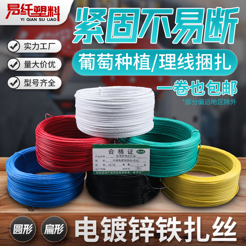 宏銘プラスチック55、000黒色500メートルpvc結束帯亜鉛メッキ針金結束線被覆針金