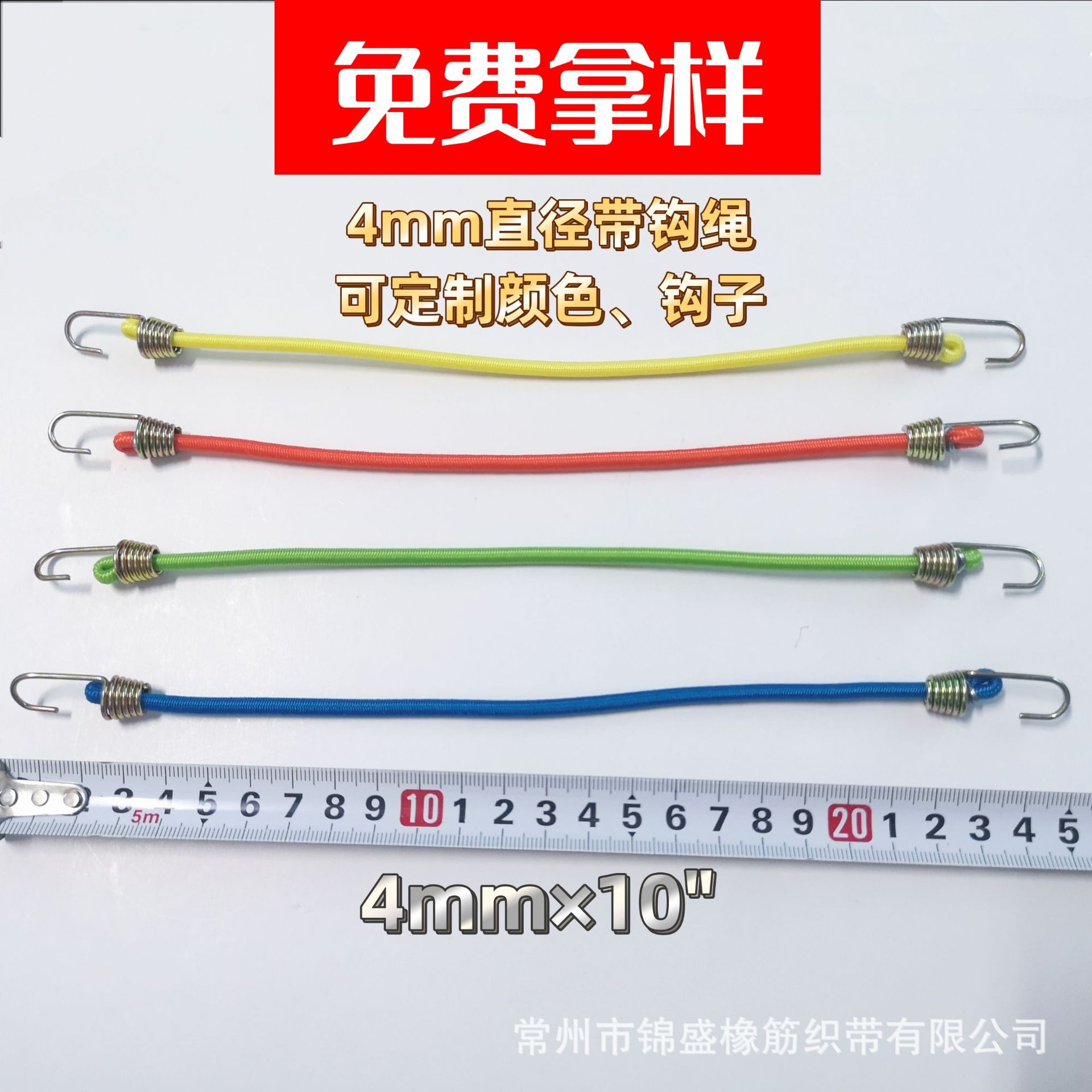 4mmゴム多機能カラーミニロープフック付き弾性ロープ結束バンド固定ロープ弾性バンド