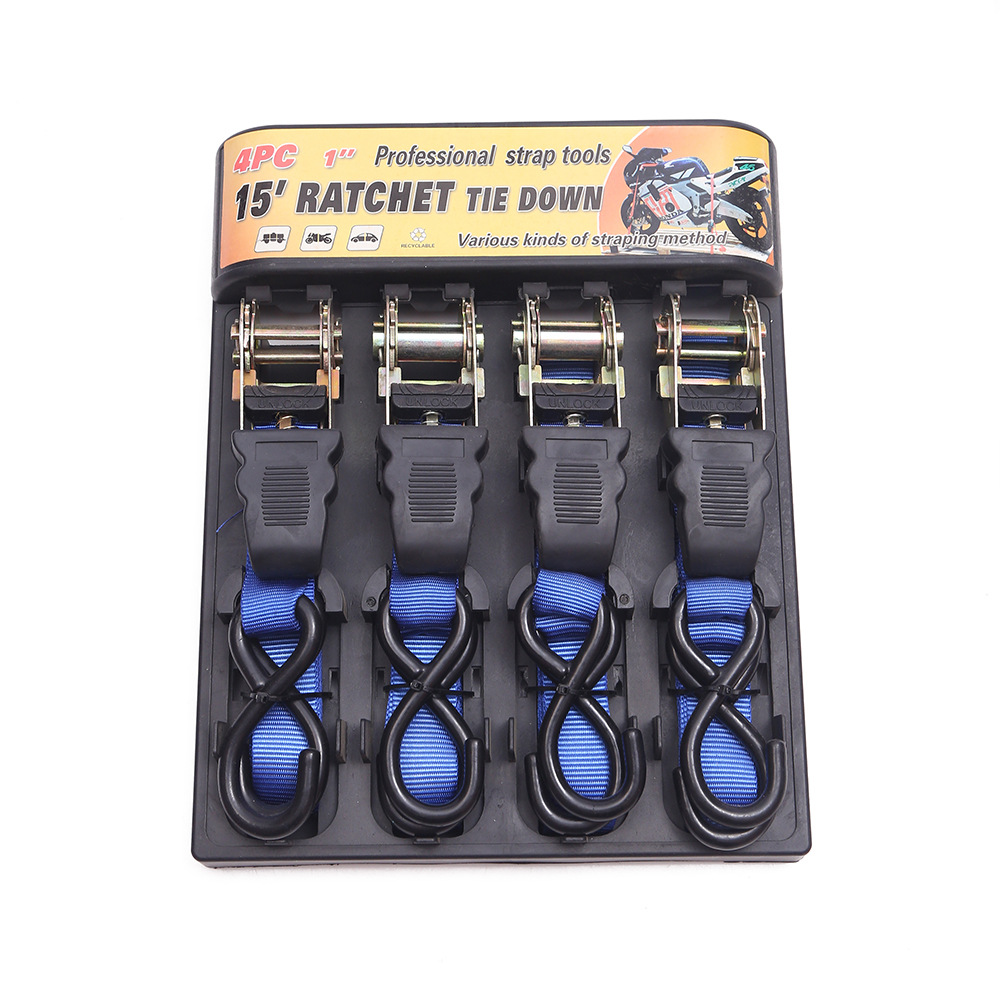 ラチェット引き締め器4セットのオフロード車のトップ荷物固定貨物バンド4.5メートル * 25mmダブルsフック