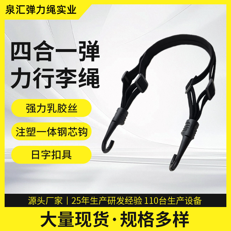 クロスボーダーラテックス製荷物用ロープ、フック付き伸縮ロープ、バッテリーカー・バイク・ヘルメット用ロープ、4in1結束バンド