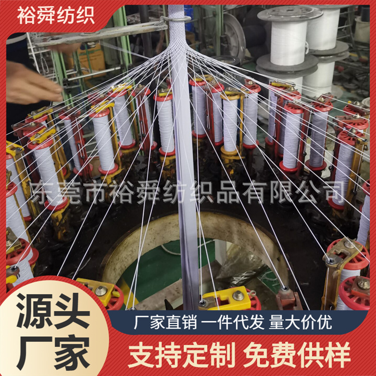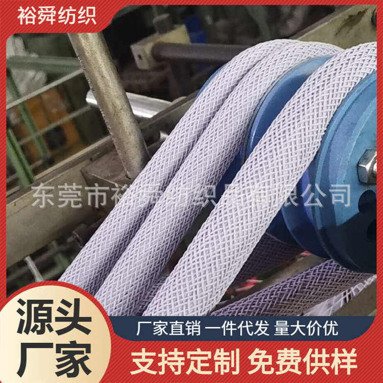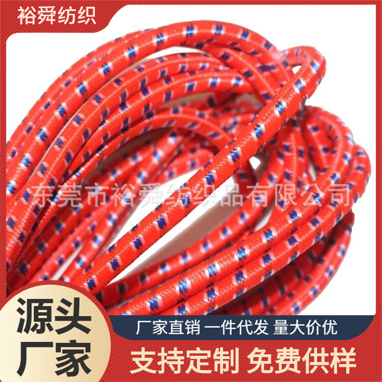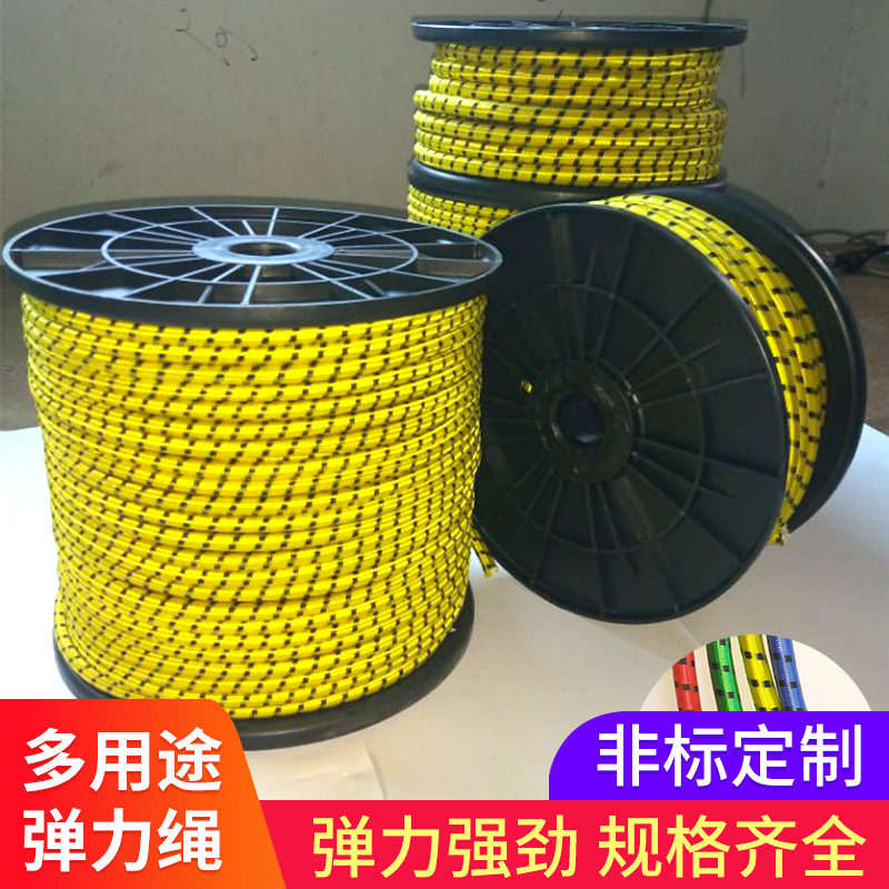 裕舜紡織は20mm弾力ロープの外皮ラテックス糸の編み物ロープを生産して1000メートルから滑り止めの反射弾性ロープを作ります。
