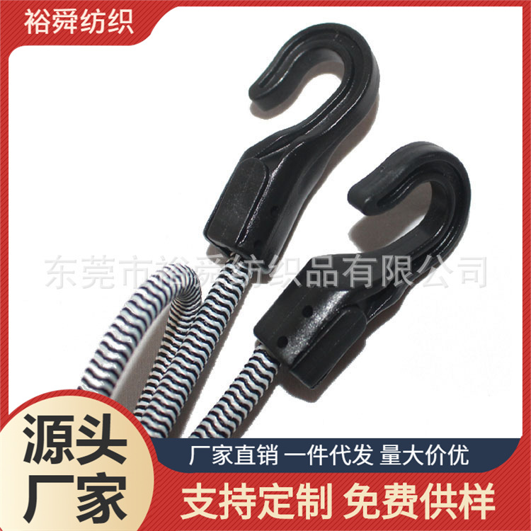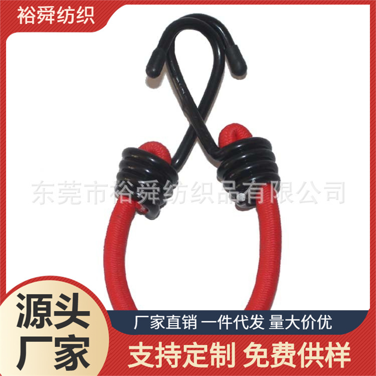 メーカーカスタマイズラテックス弾性ロープ射出成形鋼芯フック付き荷物ロープ電気自動車弾性貨物結束ロープ丸