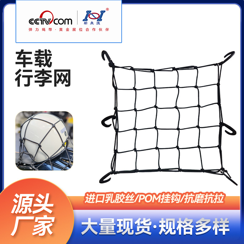 クロスボーダーラテックス弾性オートバイヘルメットメッシュバッグ、車載荷物ネット、貨物ネット、厚手の荷物固定ネット
