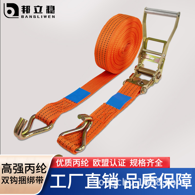 工場直販トラック梱包テンショナー、コンテナ貨物ストラップ、厚みのある耐摩耗性ラチェット固定ベルト