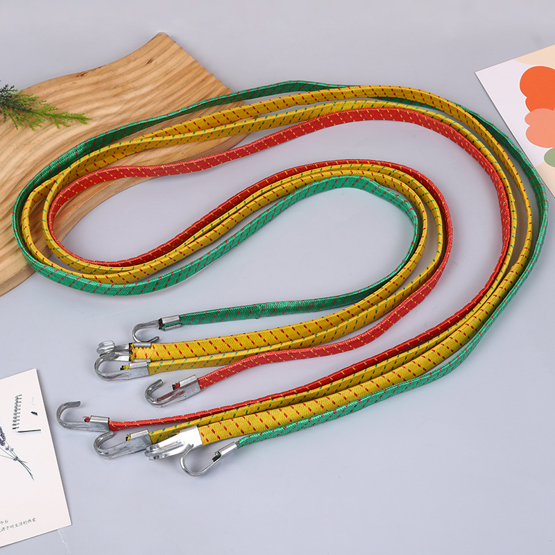 電気自動車用伸縮ゴムひも 1.5m フック付き カラフルな平型車用ひも オートバイ後部座席用荷物結束ゴムひも