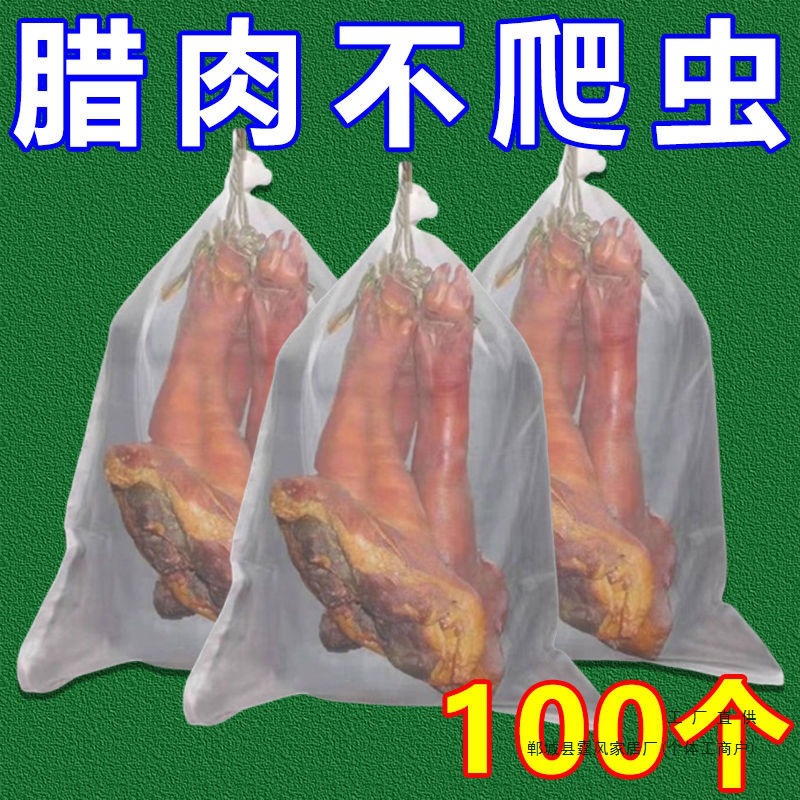 ベーコン乾燥用メッシュバッグ、肉引き紐ナイロン塩漬けアヒルハム干物、防虫、通気性、防虫吊り下げメッシュバッグ、収納吊り下げバッグ
