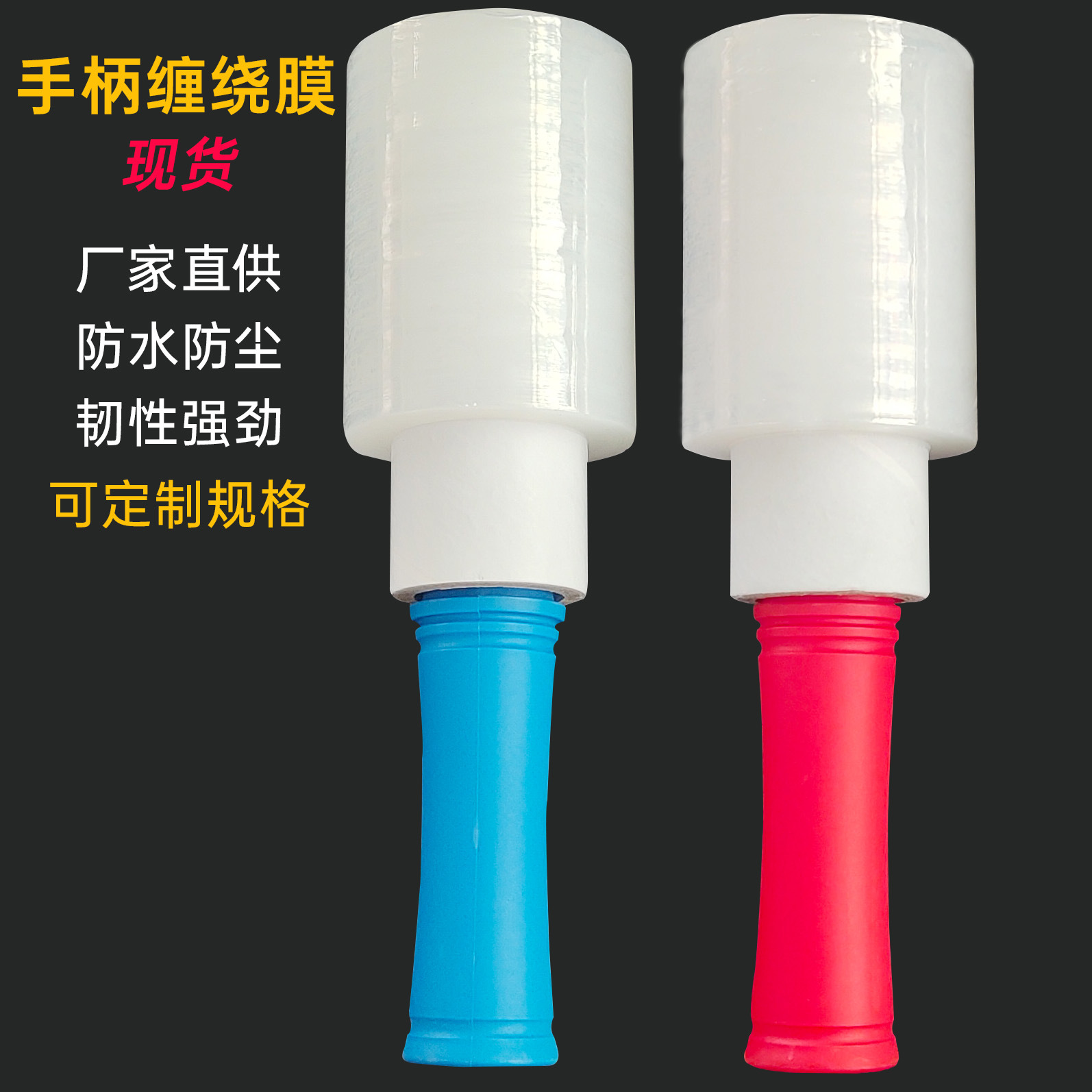 pe ハンドルフィルムミニストレッチラッピングフィルムメーカー透明自己粘着小型ロールラッピングフィルムプラスチックハンドルラッピングフィルム