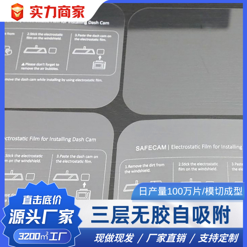 三層保護フィルム、接着剤不要、自己吸着式、ドライブレコーダー電子画面用PET保護フィルム、越境専用