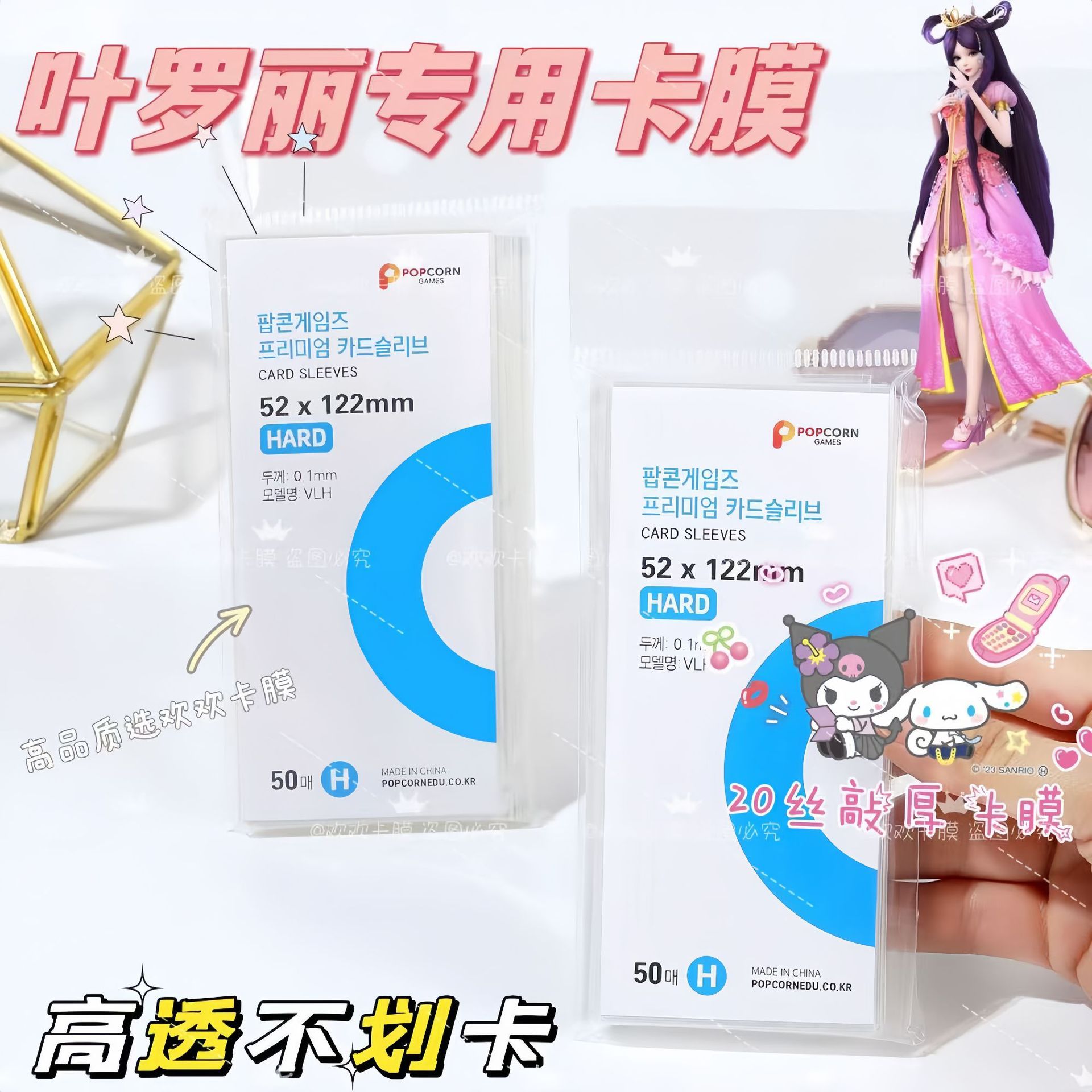 葉羅莉専用ポップコーンフィルム三寸カードカバー高透無カード20糸平口小カード透明カードフィルム