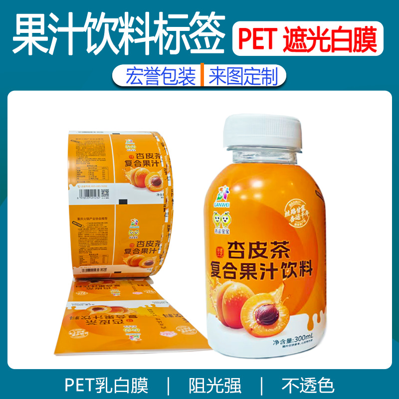 メーカーはペット乳白色フィルム収縮ラベル飲料ボトル熱収縮フィルムアプリコットスキンティーコンパウンドジュース収縮ラベルを提供しています