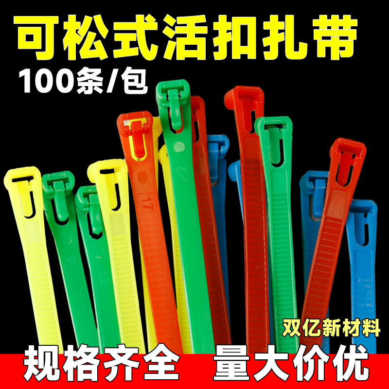 リリース可能なナイロンケーブルタイ、プラスチック製、ロック式、固定用、再利用可能、カラー、黒、白