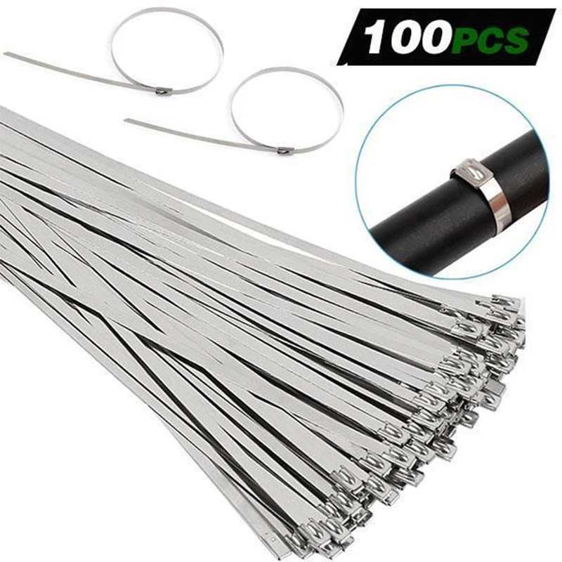 100ピース入り金属バンド付きステンレスバンドsus304多用途巻き帯ロックバンド