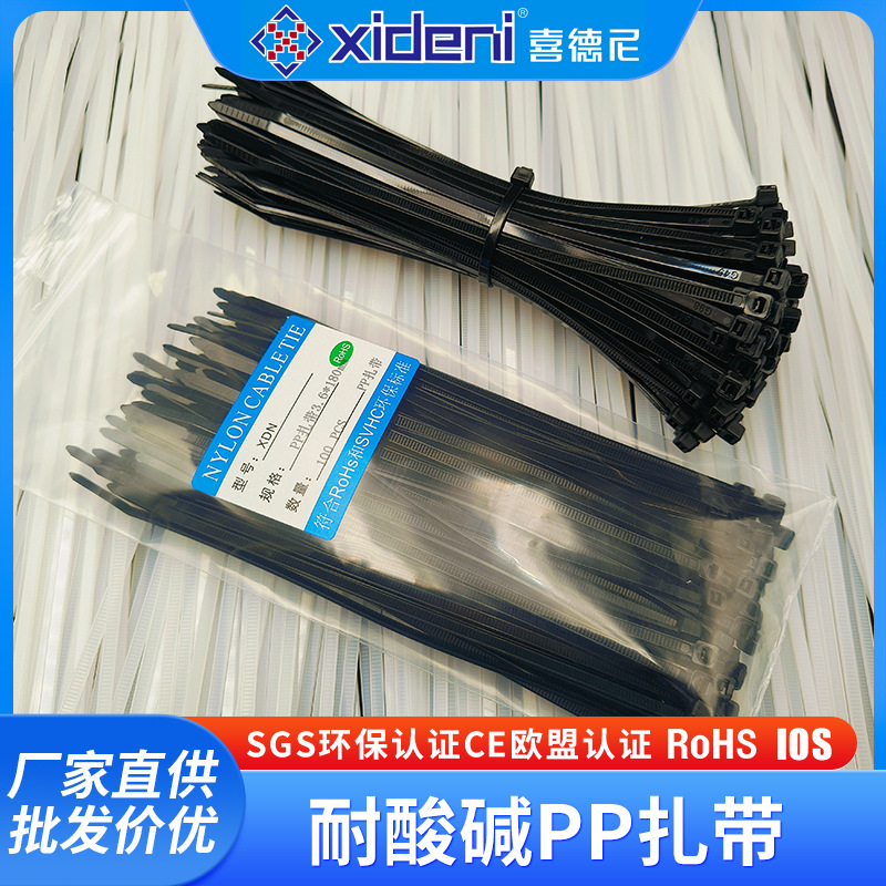 酸アルカリPPバンド耐化学腐食バンド化学工業業界専用セルフロック式黒色バンド結束バンド