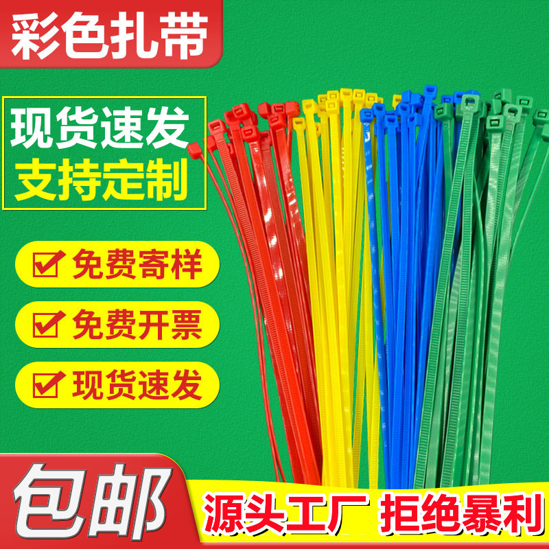 メーカー卸売りカラーバンド自鎖式赤黄青緑植物結束バンド束線プラスチック結束バンド