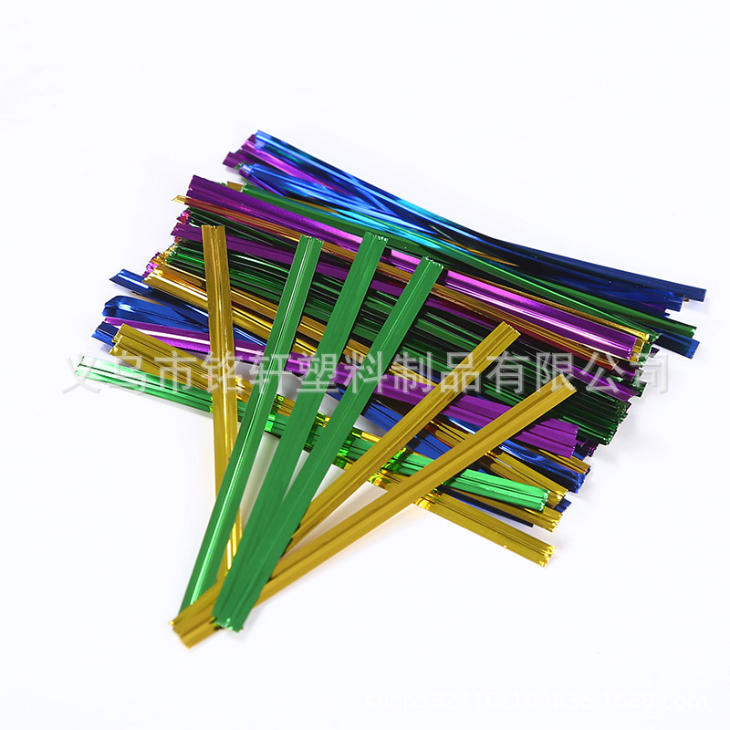 8 センチメートルゴールドとシルバーのタイロリキャンディ包装ロープシールタイ食品袋金属ソフトゴールデンタイ