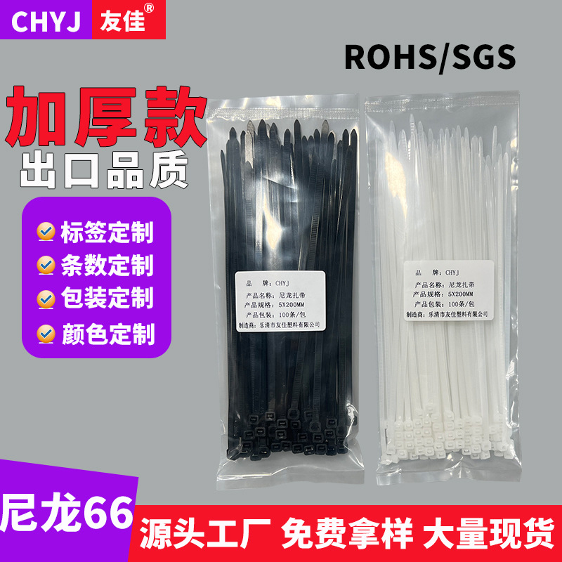 卸売ナイロンケーブルタイ新素材4*200結束用プラスチックケーブルタイ工業グレード耐寒性厚手ナイロンケーブルタイ