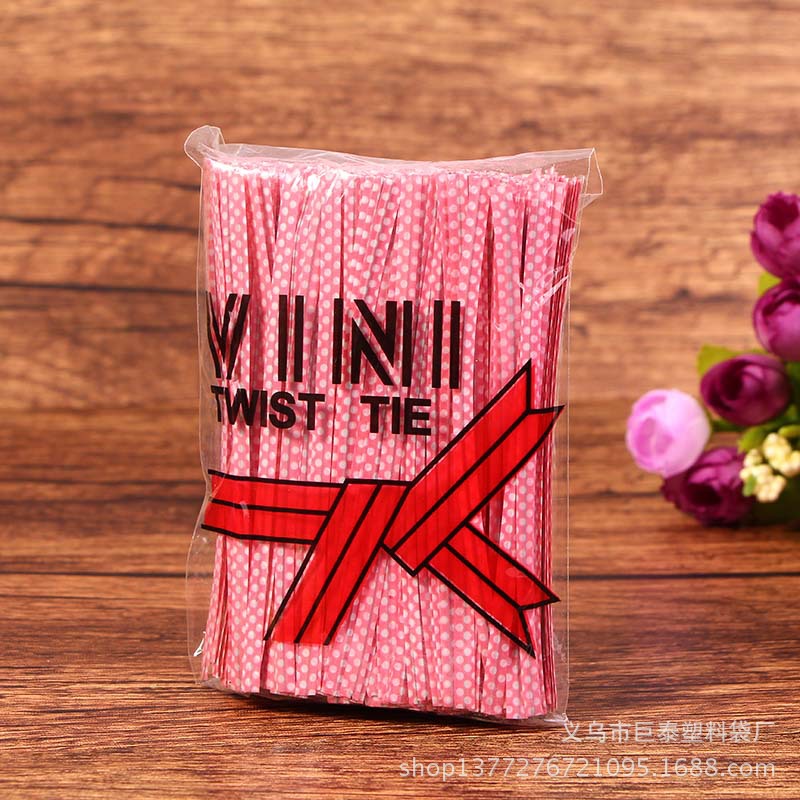 カラフルな水玉模様のタイベーキングタイロリポップパンバッグシールタイ10cm鉄線