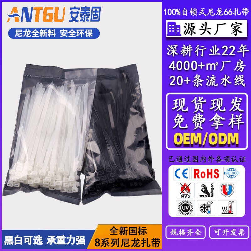 工場卸売りセルフロック式ナイロン結束バンド4*200結束バンド100本黒白色カラーナイロン結束バンド