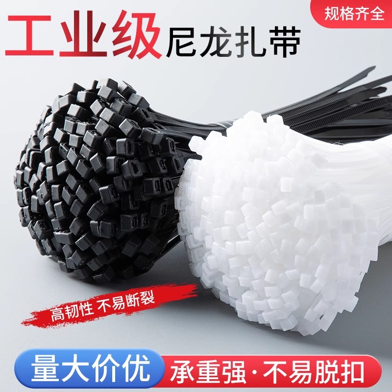 卸売ナイロンケーブルタイ、セルフロック式、黒白カラー、固定バックル、結束バンド、越境貿易専用
