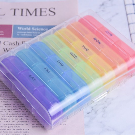 ピルボックス 7 日間便利な家庭用白シェルカラーグリッド 21 ポイント箱入り密封された ABS プラスチック薬収納ボックス