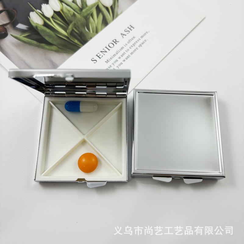 クリエイティブスクエアメタルピルボックスポータブル4コンパートメントピルボックス口紅バームボックスピルボックス