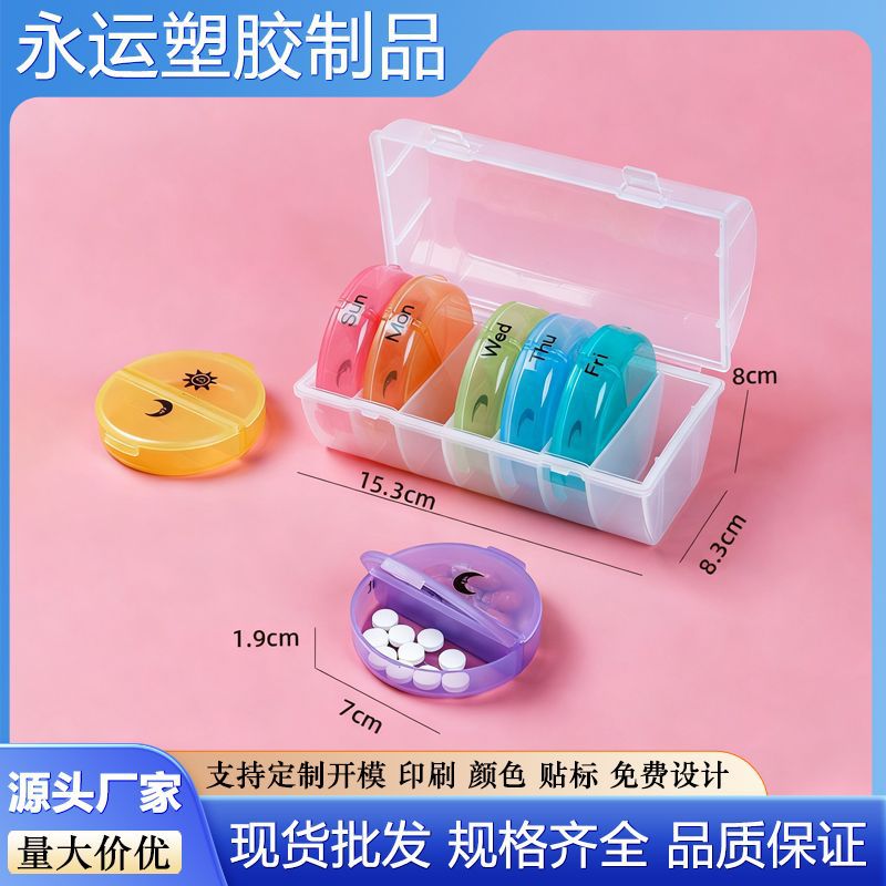 ラウンド 1 週間 7 日間ピルボックスポータブル 14 コンパートメント朝食と夜 2 回大容量医薬品ヘルスケア製品包装ボックス