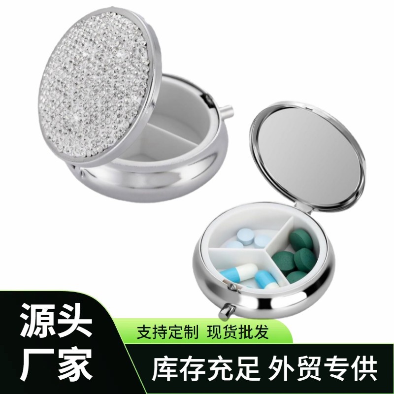 アマゾンの同じタイプの錠剤の救急の錠剤の3格は鏡の小さい薬の箱の3格のドリルの精巧な収納の薬の箱を持ちます。