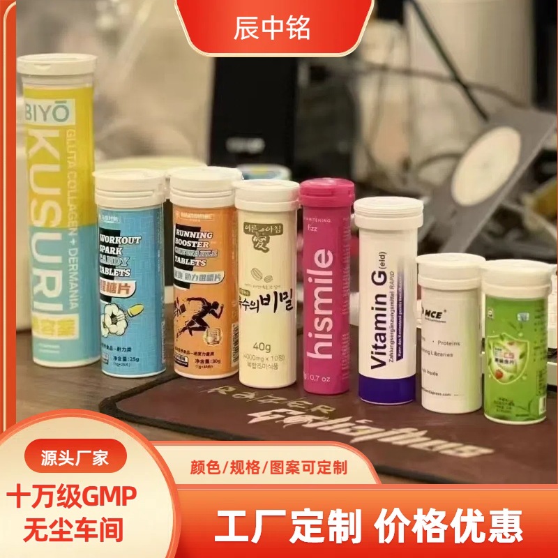 工場カスタムビタミンシートpp発泡ボトル食品プラスチック管状ボトルキャンディー打錠キャンディー分注ボトル