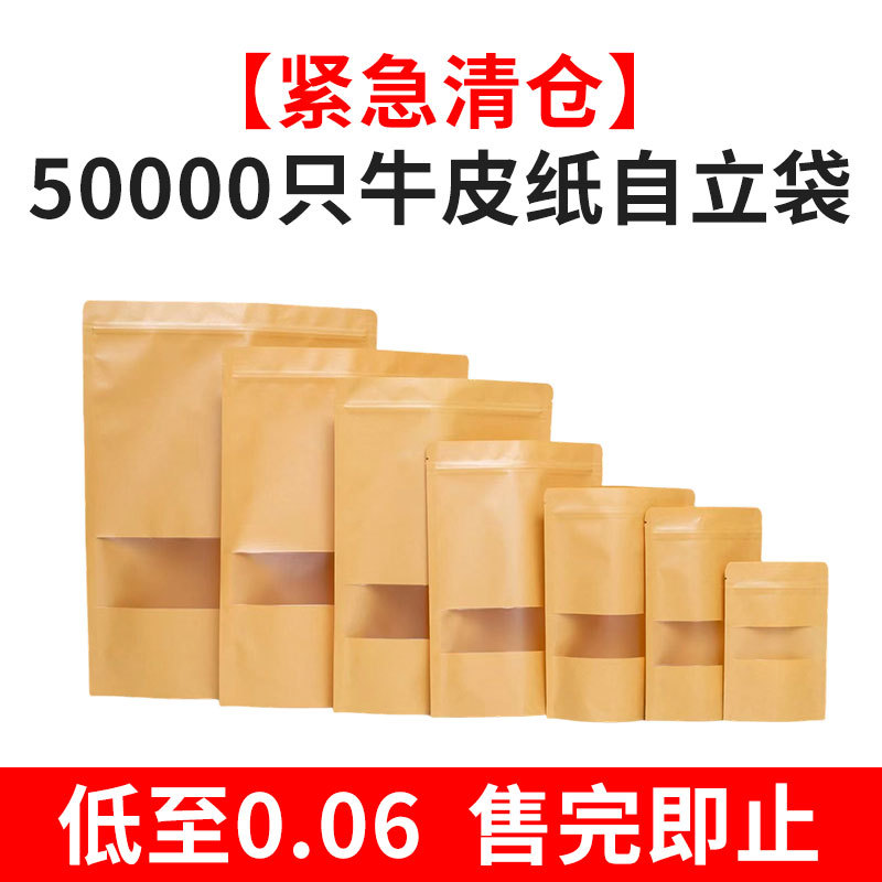 牛皮纸自封袋食品包装袋零食茶叶密封袋塑封口开窗袋子批发