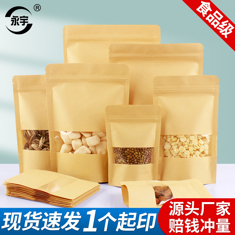 クラフト紙自封袋自立袋厚いドライフルーツ食品包装袋茶葉高清開窓密封袋卸売り