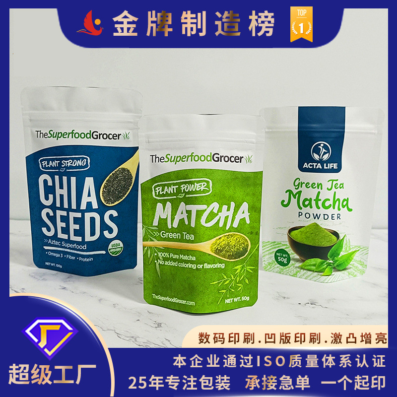 アルミ箔自立自封袋カスタム純アルミチャック袋抹茶粉ココア粉包装袋茶葉袋オーダー