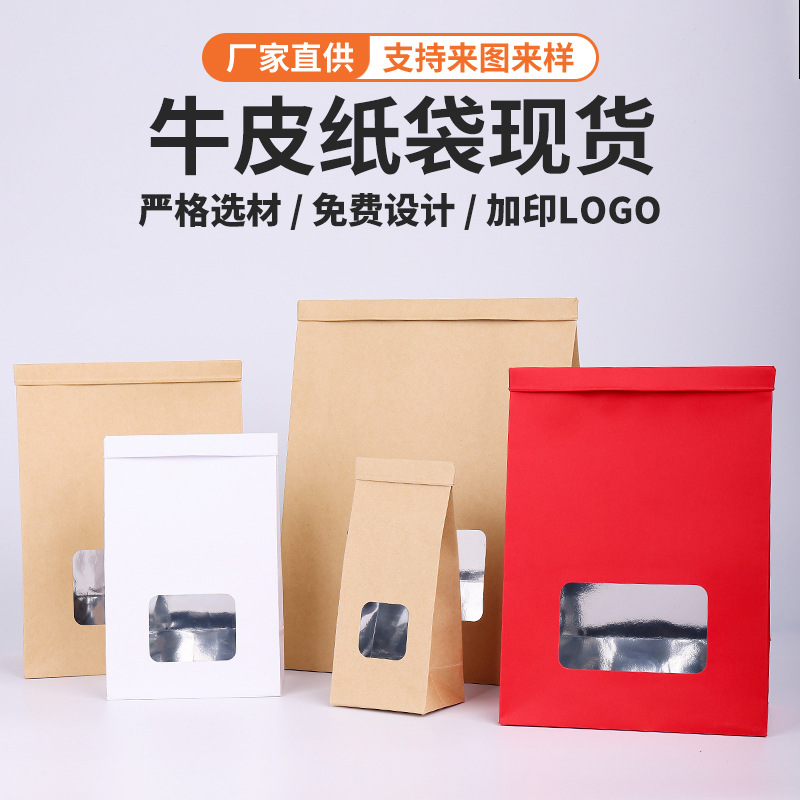 紅茶プーアール牛革紙袋既製品茶葉包装袋鉄線巻き縁シール開口窓付きアルミ箔ジップロック袋