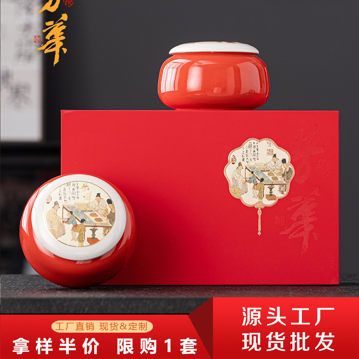 新品250g半斤入り茶葉缶磁器缶ギフトボックス通用紅茶緑茶陶磁器缶茶葉包装箱空箱