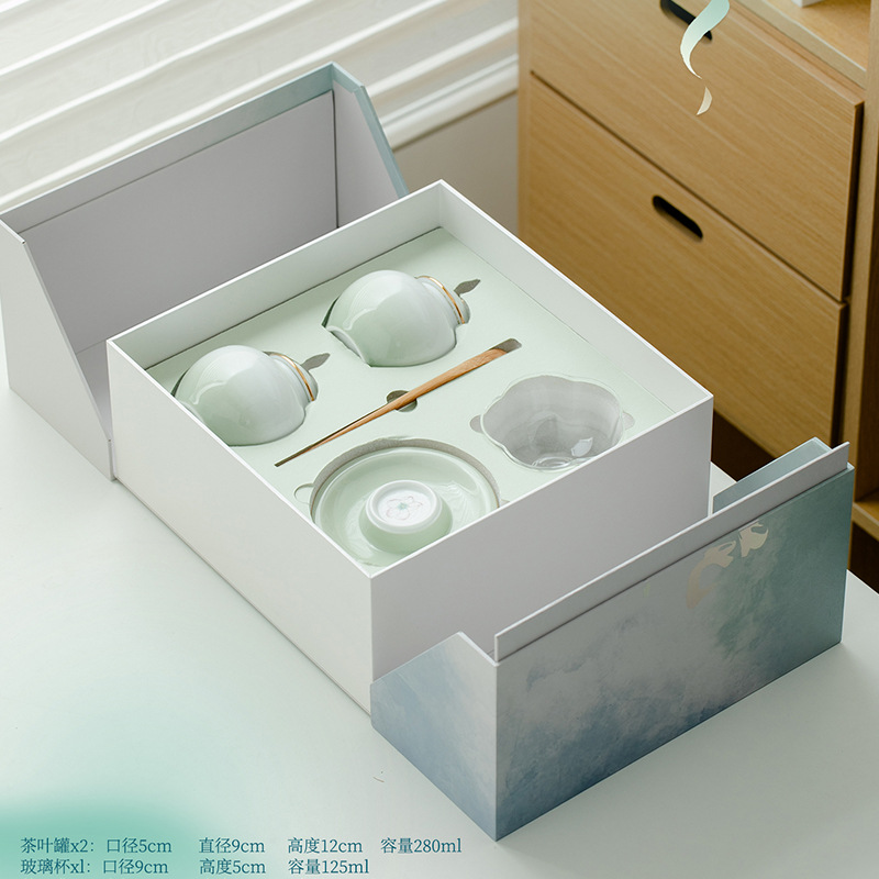 2024年新作クリエイティブセラミック缶茶缶ガラスカップ花言葉緑茶白茶陳皮茶包装ギフトボックス