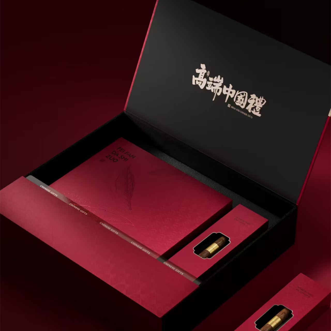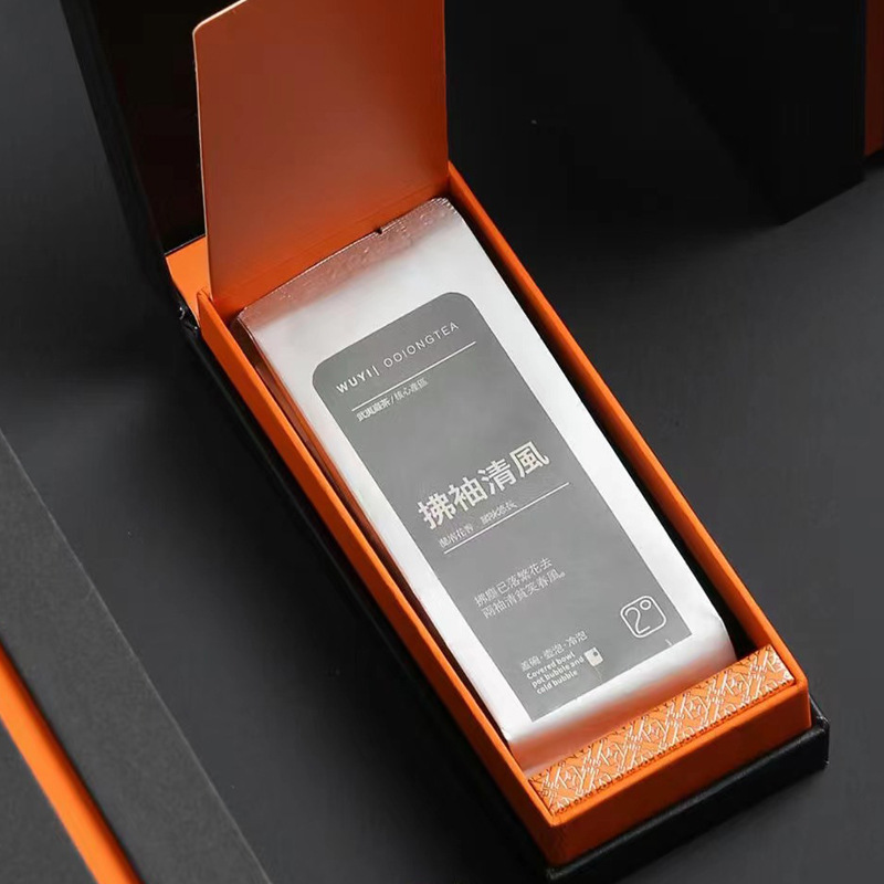 高級茶の包装箱の空きギフトボックス岩茶シナモンの赤い服のシングルモミの長い泡はギフトボックスの小さい泡のお茶の餅を並べます。