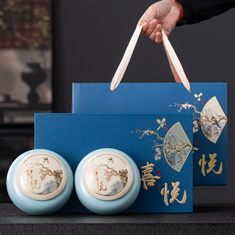 卸売り陶磁器茶葉缶包装礼箱金紅茶緑茶白茶散茶新製品防湿密封缶印ロゴ