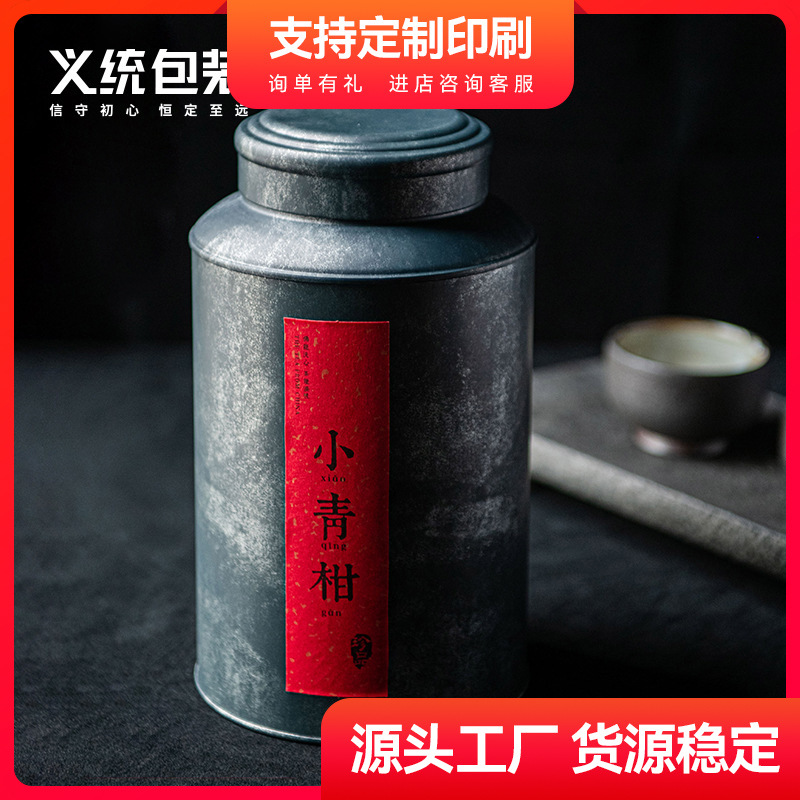 義統黒色円形銑鉄茶葉缶初1686両缶茶葉包装茶葉鉄缶現物卸売り