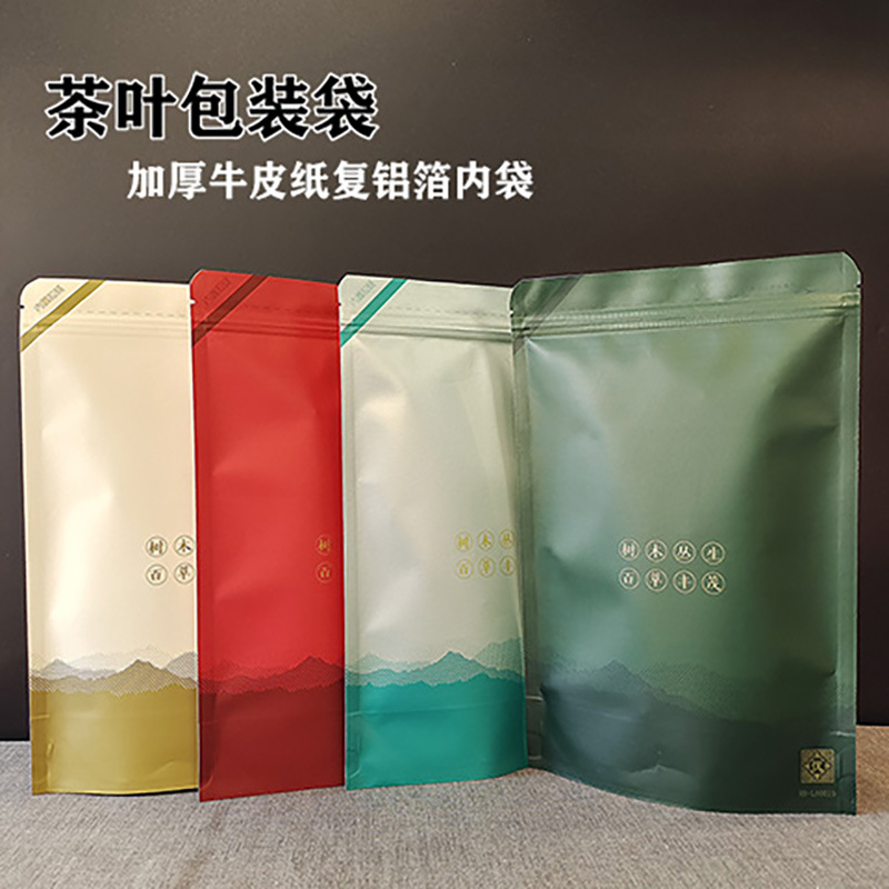 現物は汎用緑紅茶クラフト紙袋を厚くして、茶葉包装袋のアルミ箔を半分にして、ジッパー卸売りを密封する