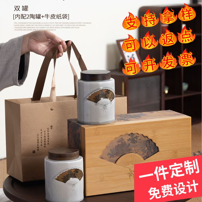新型竹製二重セラミック緑茶茶葉包装箱 空箱 ギフトボックス 獅峰明前龍井碧螺春茶ギフトボックス