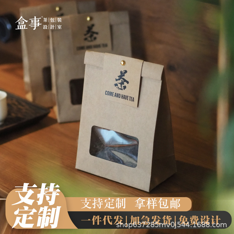 国風通用クラフト紙茶葉包装袋白茶緑茶紅茶散茶アルミ箔自封袋開窓透明袋