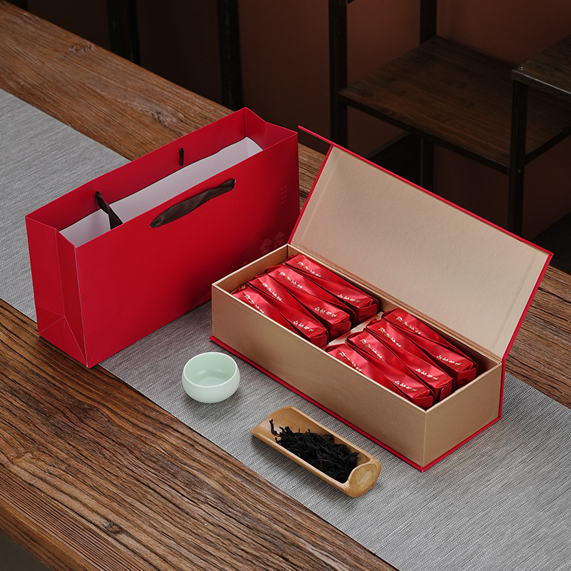汎用茶葉簡易包装箱箔押し金岩茶シナモン紅衿紅茶白茶礼箱空箱手提げ袋