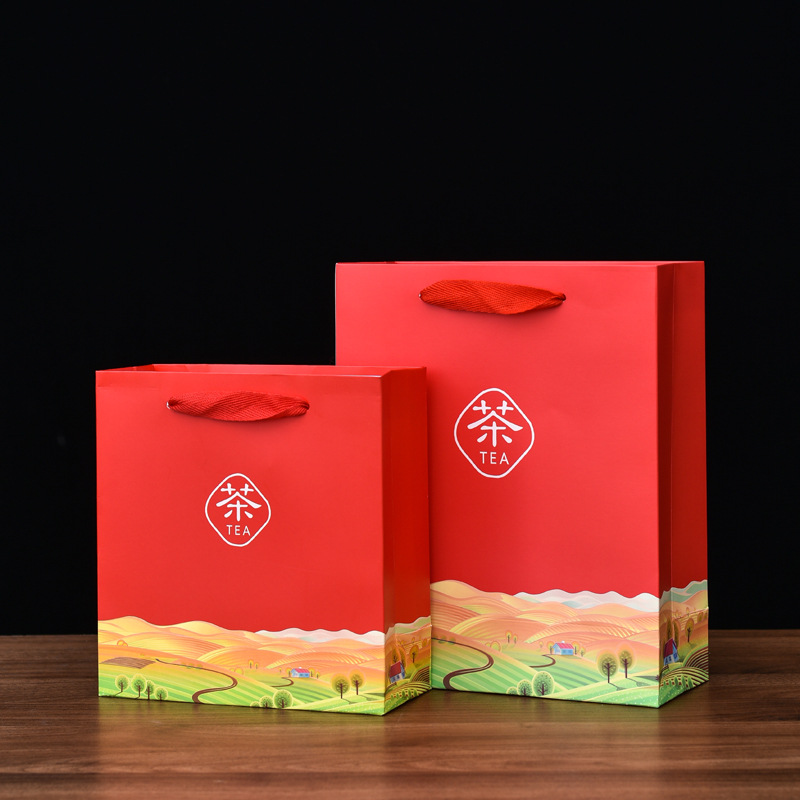 お茶の手提げ袋緑紅茶の手提げ袋は白い紙の包装袋を厚くして環境保護の贈り物を持って1斤の包装袋を持ちます。