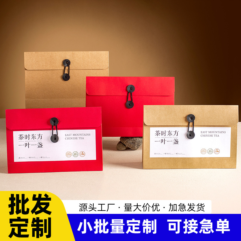 クラフト紙茶の手提げ袋赤い環境保護の紙袋の手は包装袋の復古の贈り物を持ってお茶の葉の袋の紙袋を厚くします。