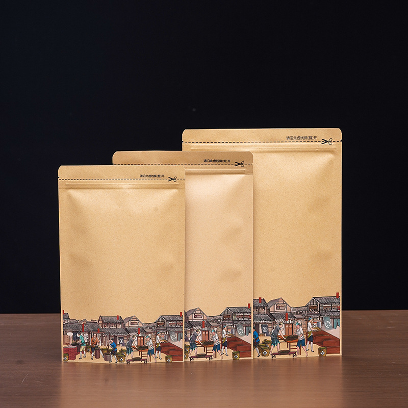 クラフト紙自封袋メーカーは窓を開けて自立した包装袋食品茶葉密封ポケットを厚くして小ロットをカスタマイズした