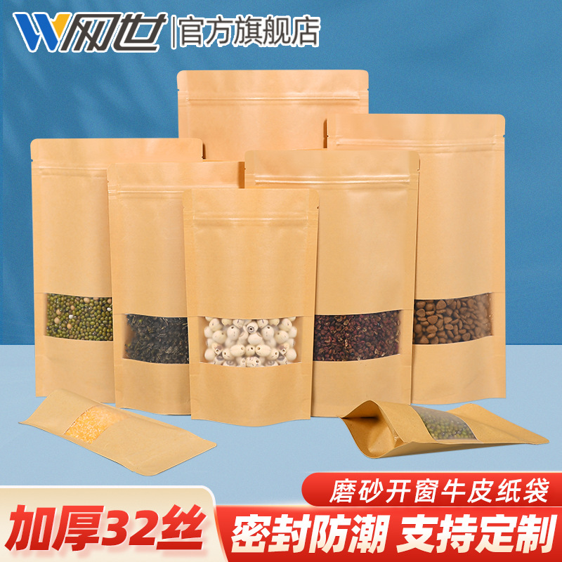 厚いフロスト窓クラフト紙袋自封袋食品包装袋ナッツドライフルーツ自立袋密封茶葉袋