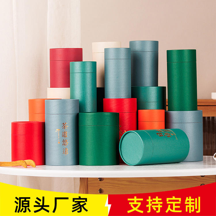 汎用茶葉缶紙缶大型トランペット半斤入茶葉包装空礼箱密封丸缶卸売り