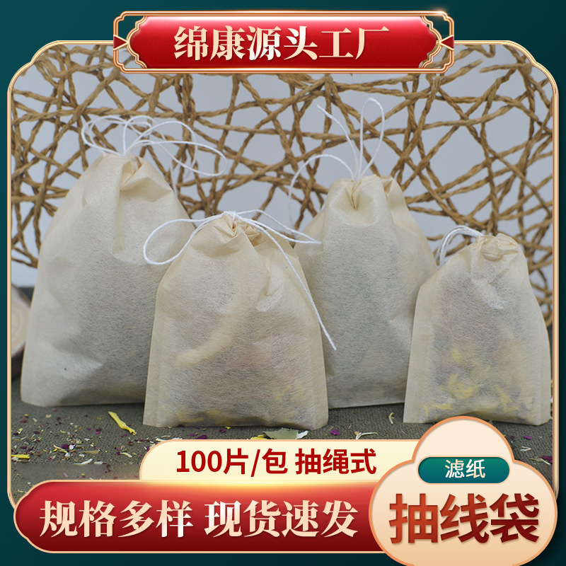 既製品の食用不織布ティーバッグ100枚入り、煎じ薬用バッグ、使い捨て巾着、スープ用濾過バッグ