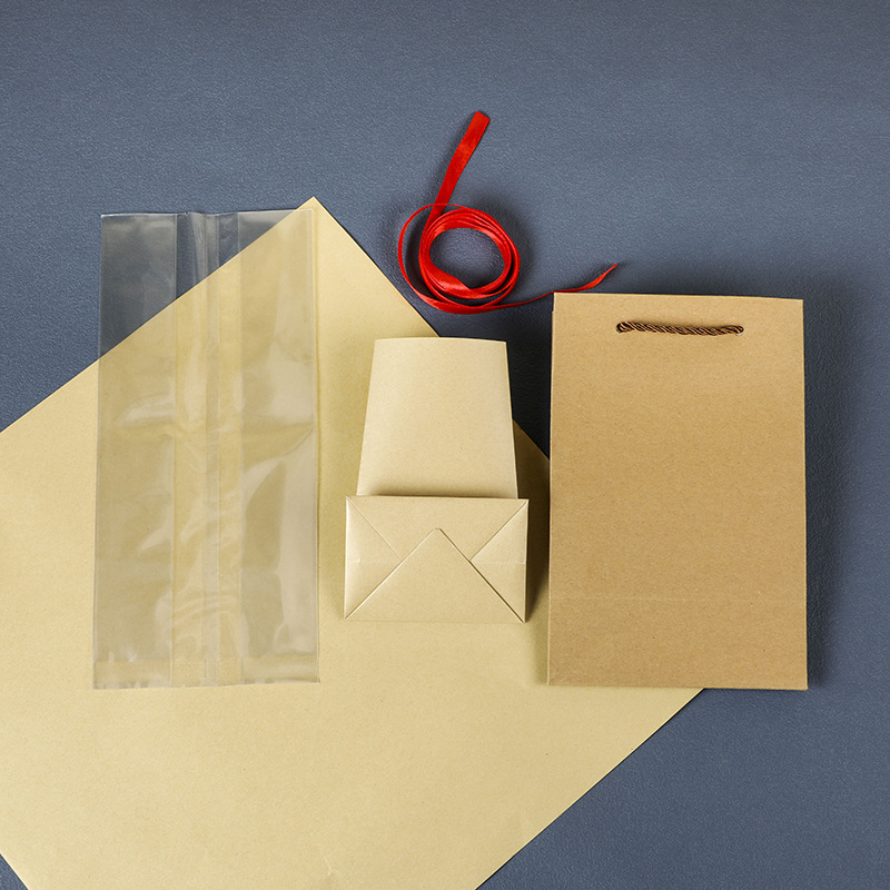 四角い包みの通用の赤いひもの透明な袋の台形の土の包装のばら積みの伝統の茶の紙は牛皮の手提げの紙袋を包みます