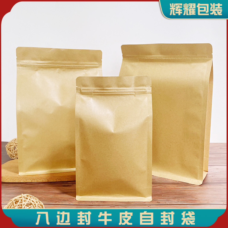 八辺封チャック袋黄色クラフト紙窓を開けない袋乾燥果包装袋緑茶袋茶葉自封包装袋