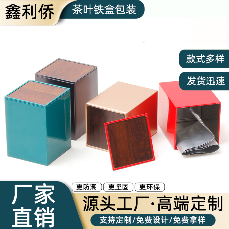 通用角型茶缶鉄缶紅茶密封缶創意木目蓋白ミリ銀針金属茶葉箱